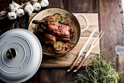 Tyylikäs setti paistin leikkaamiseen ja tarjoiluun.