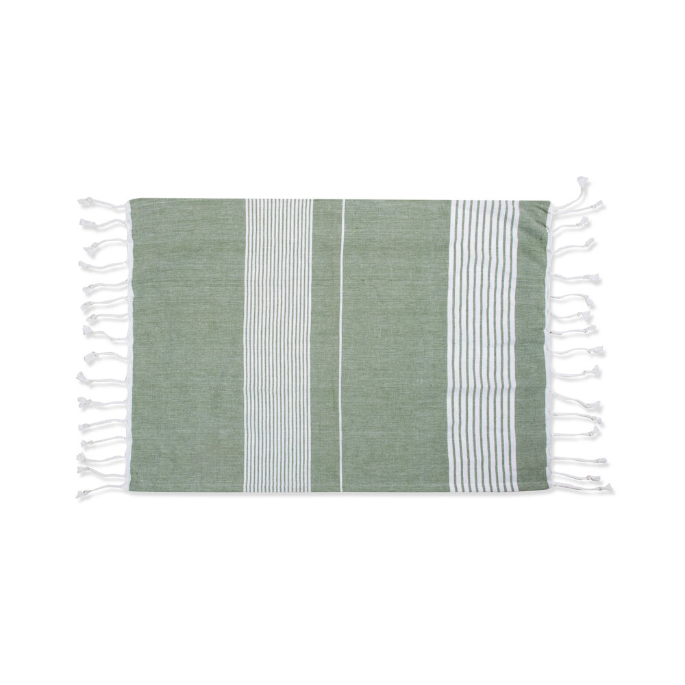 Ella Hamam 90x170 on ajaton pyyhe ohuesta luomupuuvillasta. Kaikki pyyhkeet on koristeltu Sagaformin klassisilla raidoilla eri kuvioissa ja on saatavilla kolmessa väriyhdistelmässä: vihreä, sininen ja beige. Hapsut lyhyellä sivulla. GOTS-sertifioitu.