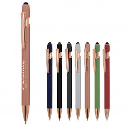 Ruusukultainen alumiininen kuulakärkikynä, jossa on tyylikäs soft-touch-viimeistely ja tukeva metalliklipsi. Kirjoitusväri: sininen.