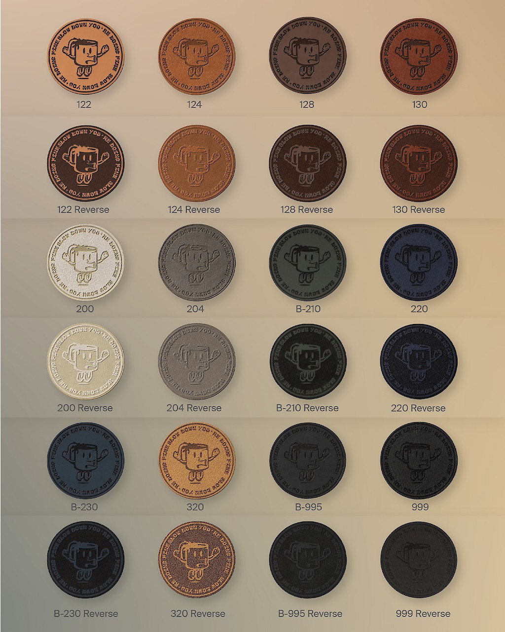 Kysy hintaa muille määrille tai muun kokoisille merkeille. Voimme myös tehdä sähköisen havainnekuvan, miltä teidän logollanne varustettu keinonahkamerkki voisi näyttää.