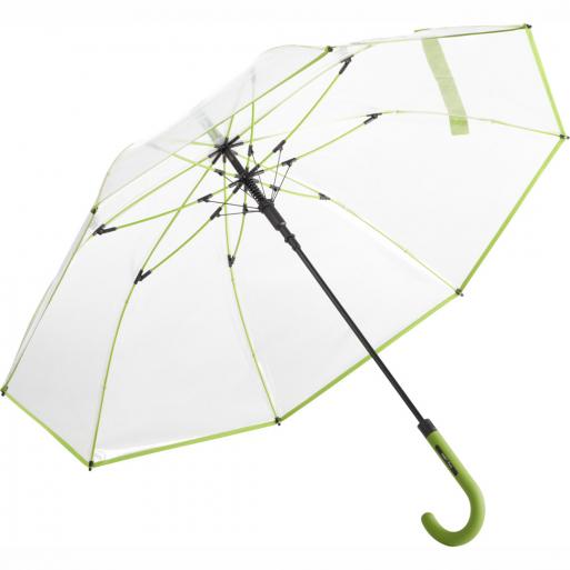 Näyttävä automaattinen perinteinen sateenvarjo, jossa on läpinäkyvä kansi ja värilliset yksityiskohdat