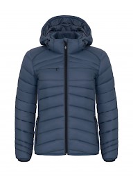 Lämmin mutta kevyt takki untuvaa muistuttavalla toppauksella. Valmistettu kierrätetystä polyamidista. Irrotettava huppu, 3 vetoketjullista ulkotaskua ja 2 sisätaskua. Joustavat resorit vyötäröllä ja hihoissa. Mukana värillinen ripustin, kätevä kuulokeratkaisu ja vetoketjun vedin.